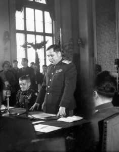После успешных для РККА военных действий августа-сентября 1945-го, в ходе которых были освобождены Курильские острова, Маньчжурия и северная часть Кореи, надо было налаживать на освобождённых территориях новую жизнь. Штыков возглавил советскую делегацию на переговорах с американцами в Корее, выступая таким образом в непривычной для себя роли дипломата.